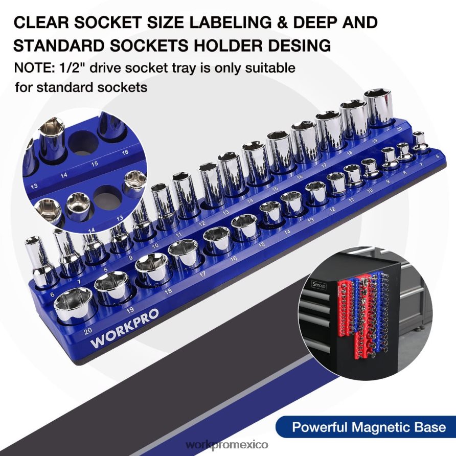 adecuado para enchufes de tamaño estándar y profundo: cada organizador de enchufes magnético está diseñado para el almacenamiento seguro de enchufes métricos tanto profundos como estándar. y sae enchufes, coloque todos sus enchufes correctamente. puedes colocar tus enchufes en cualquier lugar, como en un cajón, montado en el costado de tu caja de herramientas, para poder acceder a ellos en cualquier momento.