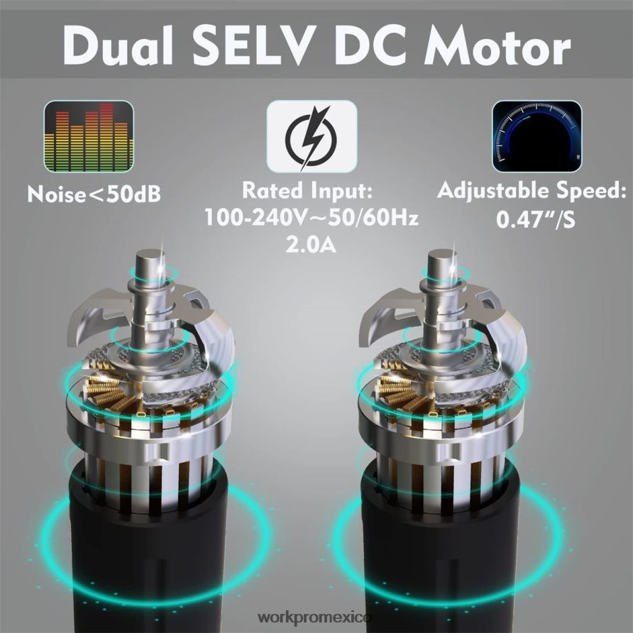 dual Conducción por motor eléctrico: potente sistema de elevación de doble motor para ajustar la altura de manera suave, uniforme y rápida a una velocidad de elevación de 1" por segundo con poco ruido. La función anticolisión protege el escritorio de chocar con obstáculos. puede cambiar la unidad entre pulgadas y cm con la función de conversión de unidades.
