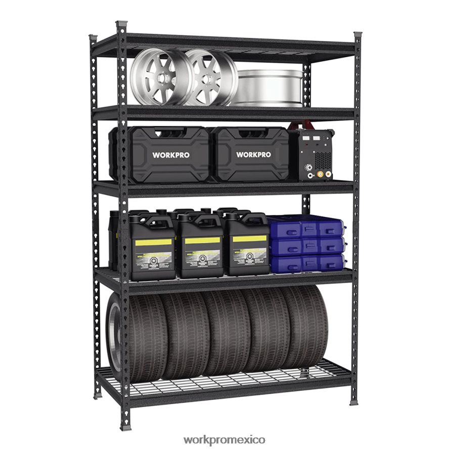 Capacidad de carga de 4000 libras: la capacidad máxima es de hasta 4000 libras en total, 800 libras per estante, que puede almacenar muchas más cosas y herramientas en su garaje o almacén.