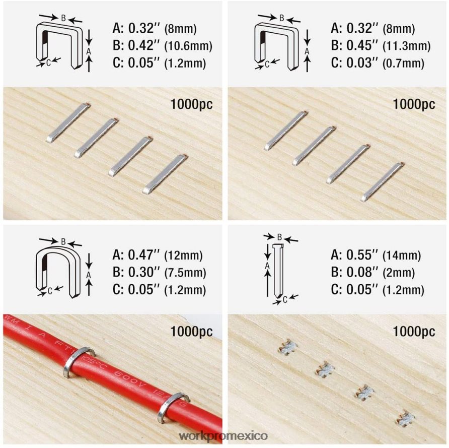 El juego incluye una pistola grapadora de aluminio manual y 4000 grapas en cuatro tamaños. Los tamaños incluyen clavos tipo puerta de 5/16", tipo " U y " para servicio pesado y liviano. Adecuado para el hogar, la oficina y el lugar de trabajo. Funciona bien para tapicería, burletes, aislamiento, cercas pequeñas y más. .