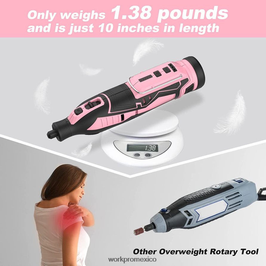 Compacto y liviano: toda la herramienta rotativa pesa solo 1,38 libras y mide solo 10 pulgadas de largo. La herramienta rotativa está equipada con un gancho que cuelga en el aire con una cuerda, ahorrando esfuerzo durante largas horas de trabajo. la herramienta tiene muy poca vibración o sonido, por lo que no hTampoco evita esa sensación de zumbido en la mano.